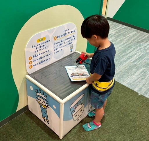 PARK内に設置された3つのクイズを探して答えスタンプを集めたお子さまに、「ミルクジャパンオリジナルシール」をプレゼントします。 親子で一緒に考えながら、酪農に関する知識を深めることができます。