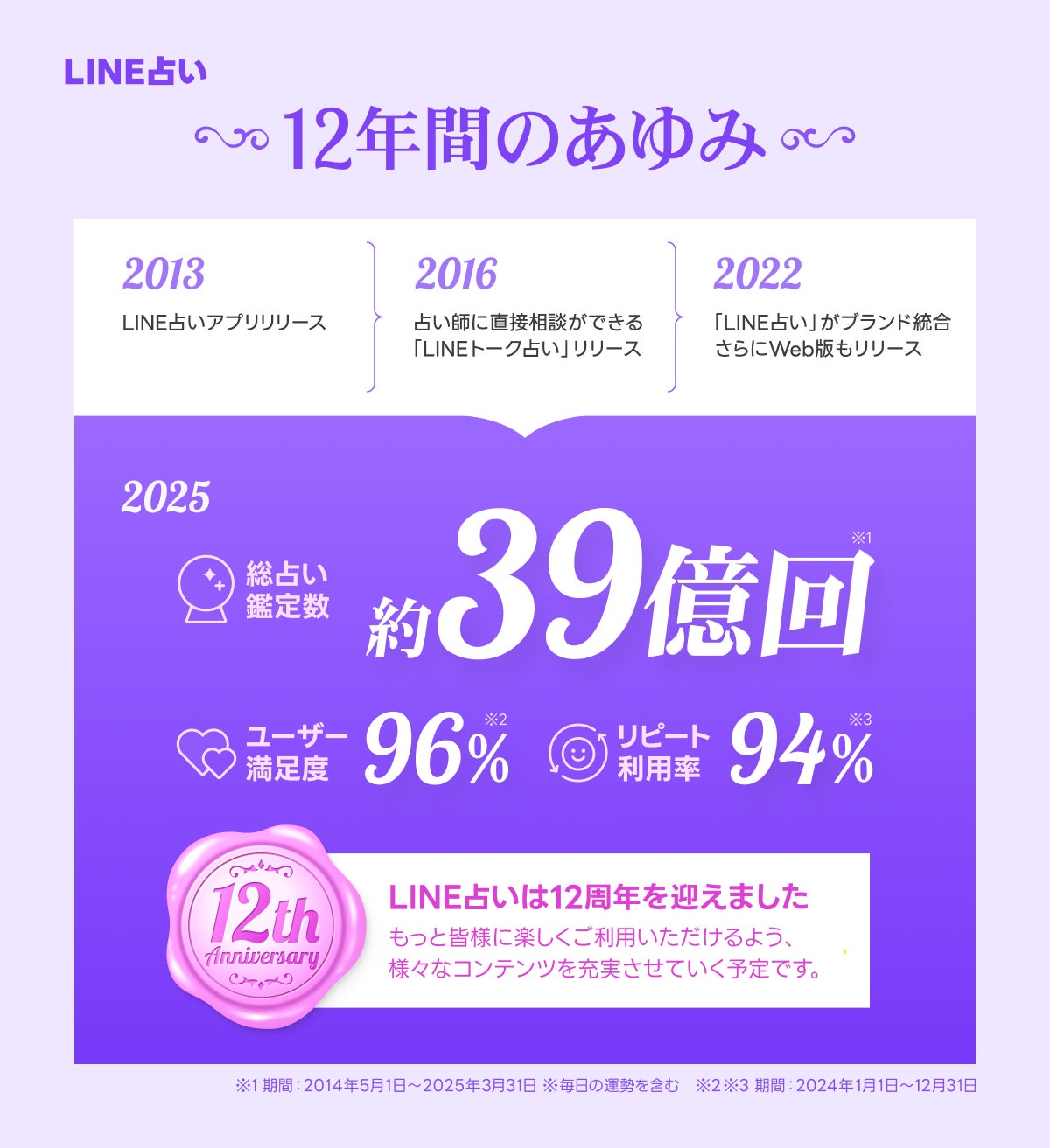 LINEヤフー株式会社は、オンライン占いサービス「LINE占い」のサービス開始12周年を記念した特別企画を2025年4月18日(金)より開催します。