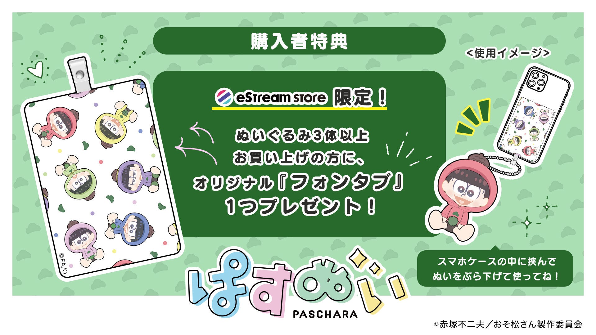 eStream Store限定特典:3体以上のご購入で、限定特典のフォンタブを1つプレゼントいたします。