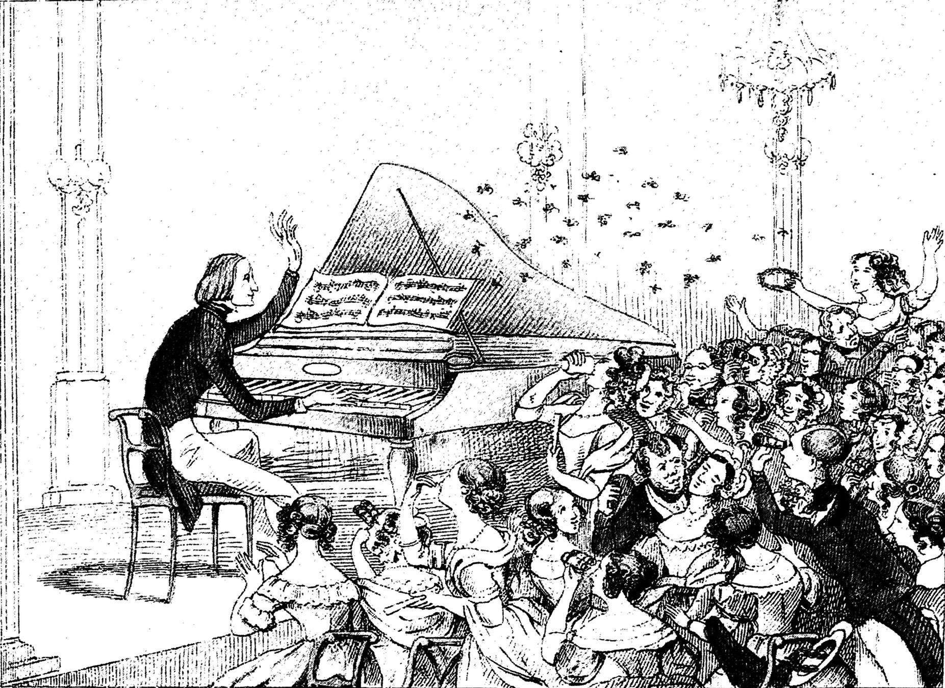 1842年、ベルリン。とあるピアニストのリサイタルの様子を描いた1枚の風刺画がある。