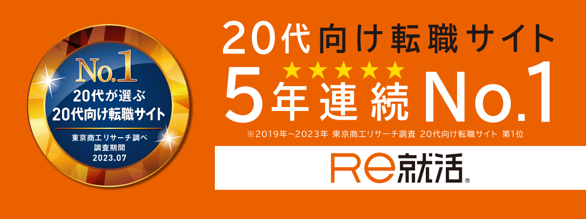 [20代専門]転職サイト「Re就活」が、東京商工リサーチの調査で「20代が選ぶ20代向け転職サイト」第1位を獲得しました。2019年から5年連続での第1位獲得となります。
