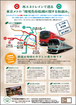 この機会に、ご家族やご友人と一緒に再エネ列車に乗車いただき「東京メトロの環境負荷低減への取組み」に触れながら、東京メトロ『乗ってエコ』スタンプラリーをお楽しみください。