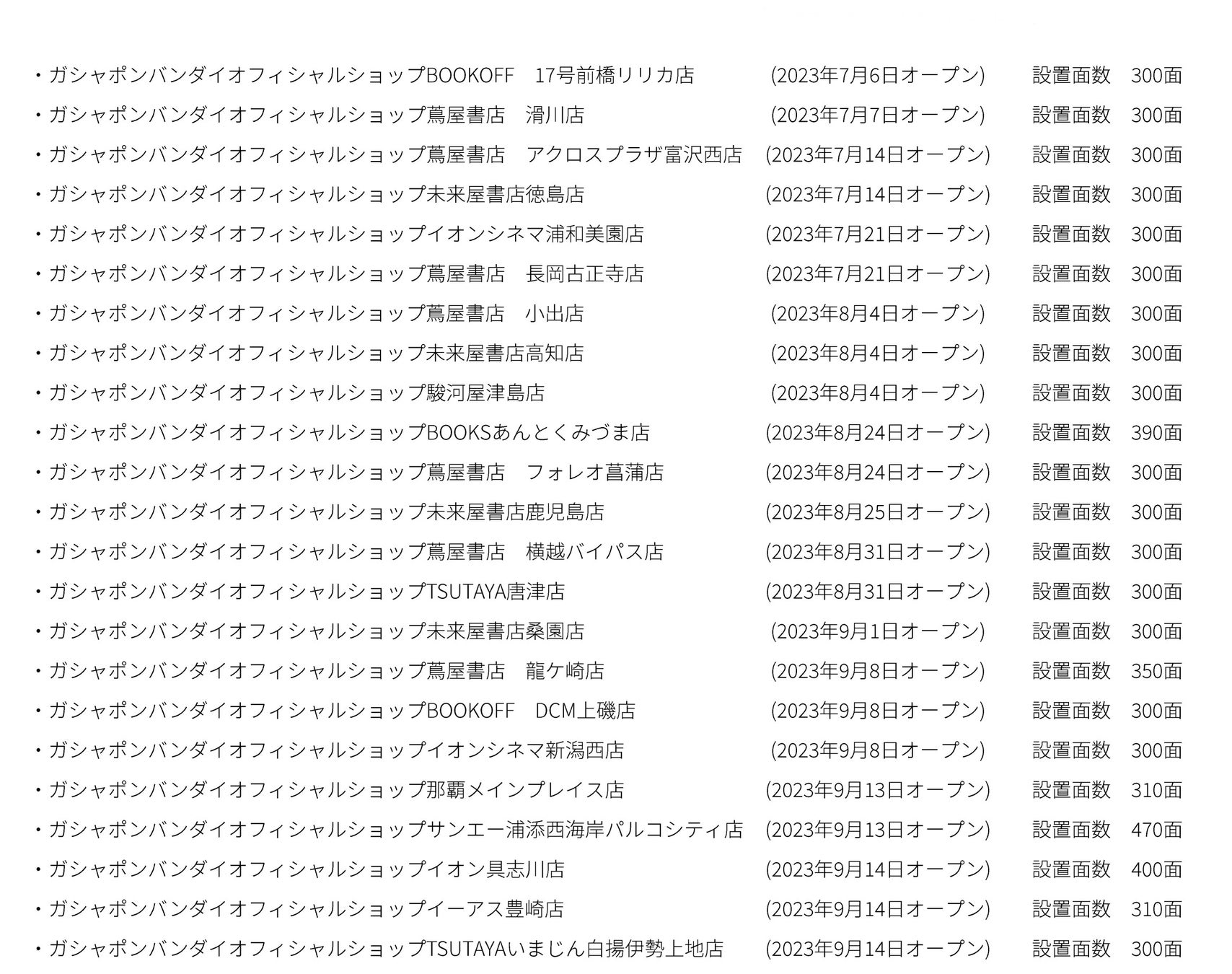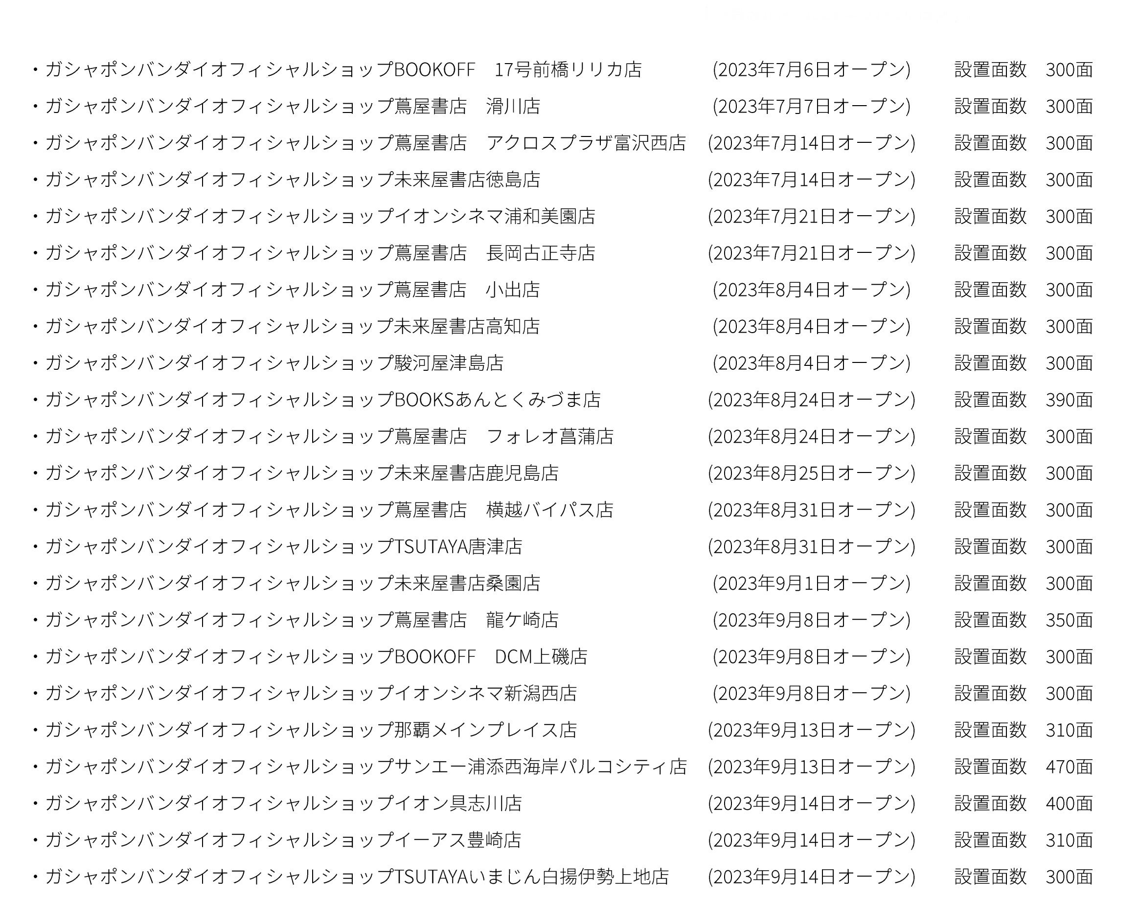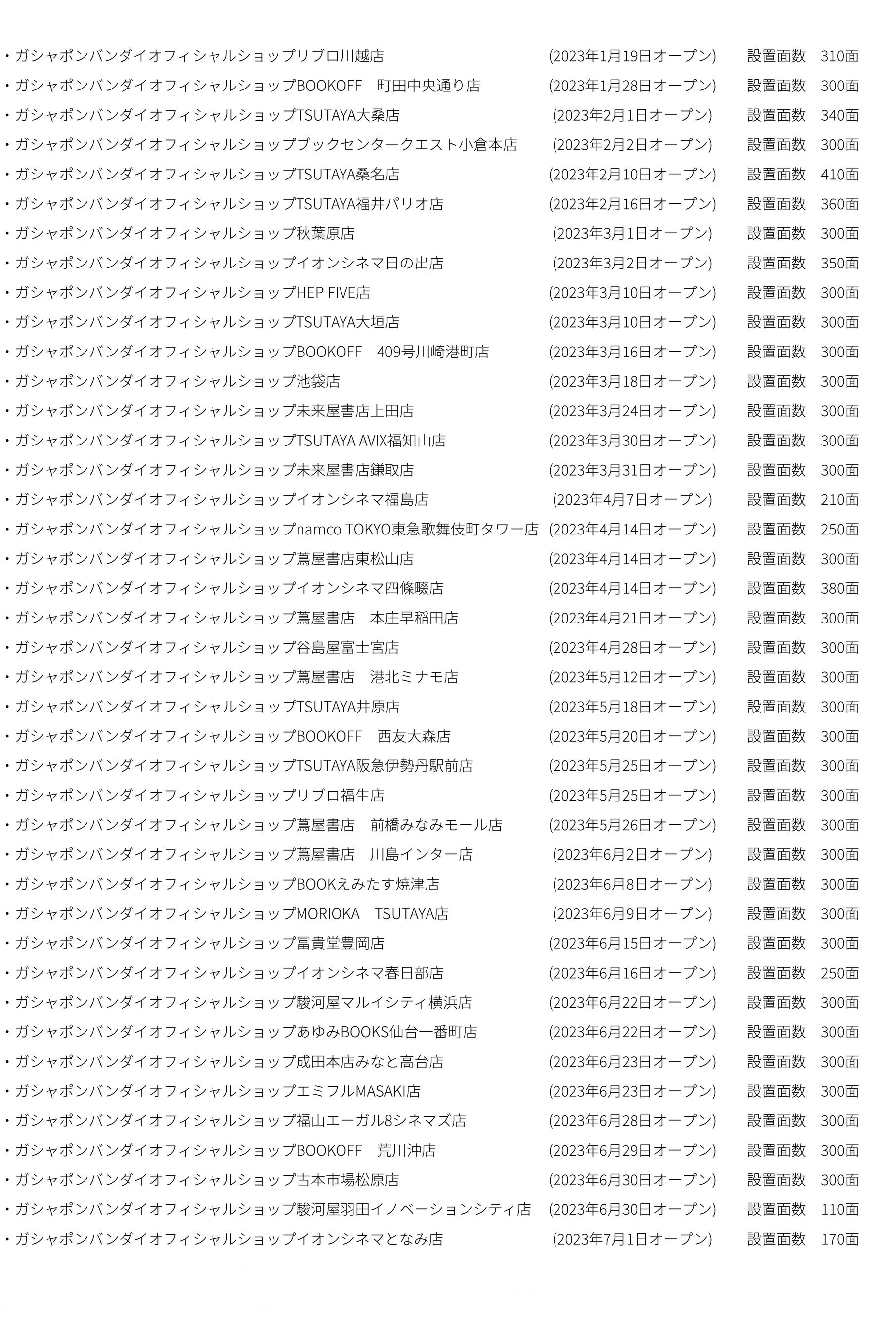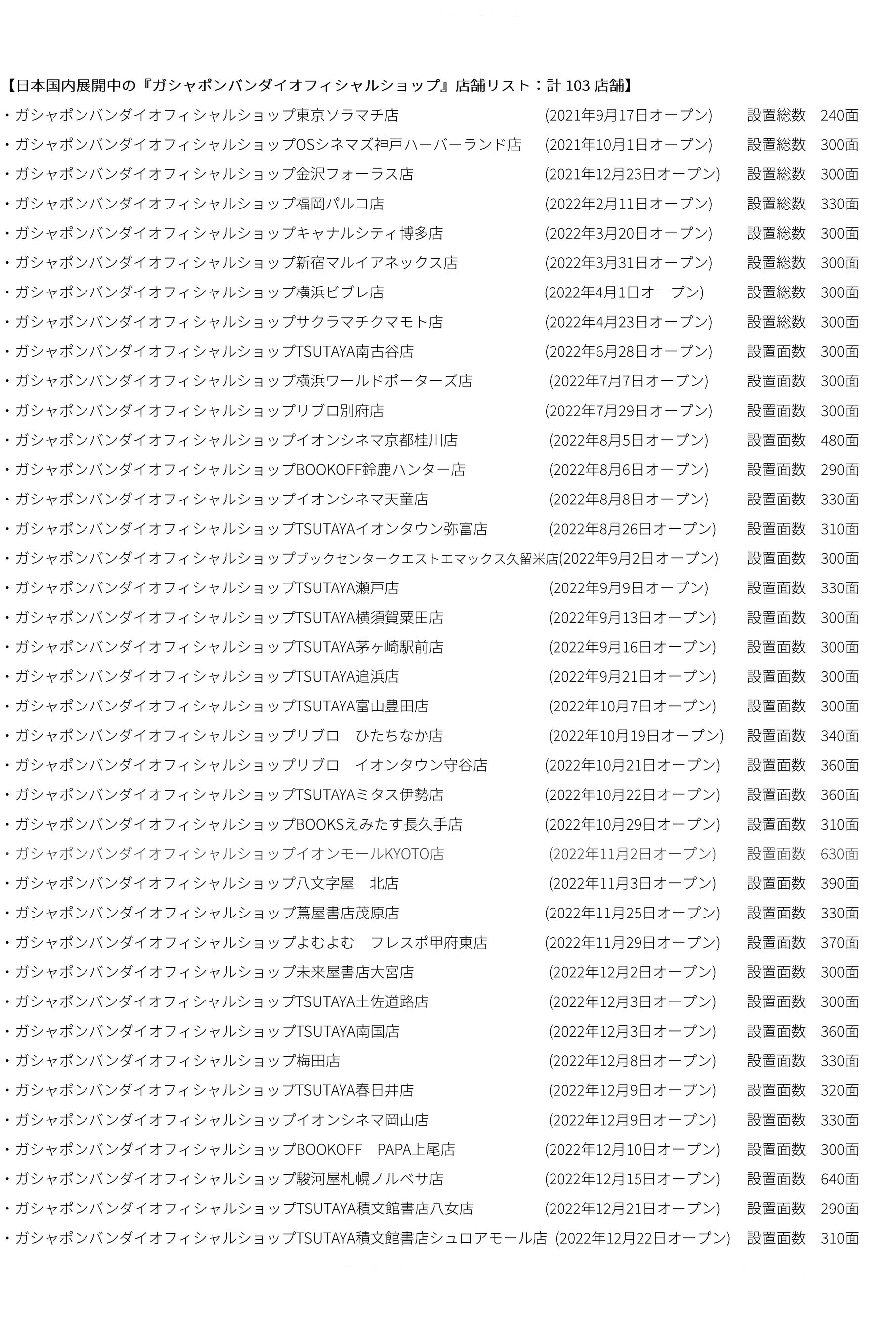 【日本国内展開中の『ガシャポンバンダイオフィシャルショップ』店舗リスト:計103店舗】