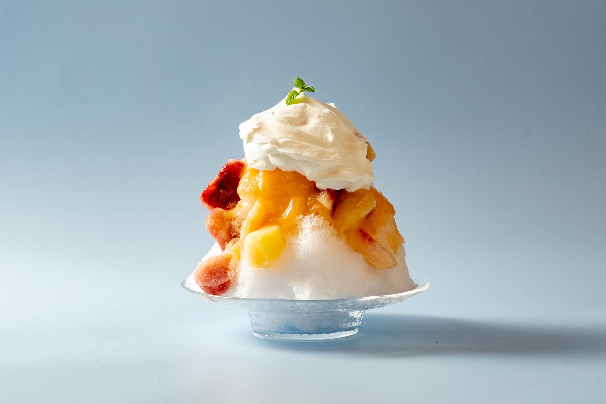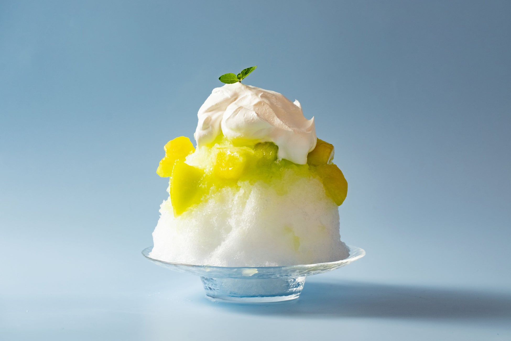 はちみつレモン風味のヨーグルトシロップに、ヨーグルトアイス、たっぷりのヨーグルトクリームがかかった、ヨーグルトづくしの雪くまです。