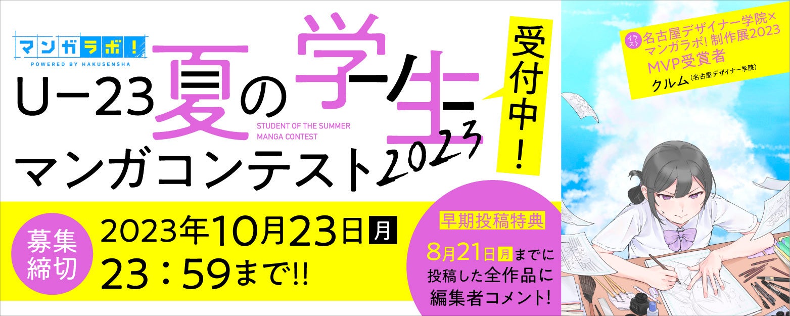 株式会社白泉社が運営する全誌合同マンガ投稿サイト「マンガラボ!」にて、7月21日(金)より学生限定のコンテスト「U-23夏の学生マンガコンテスト2023」が開催されます。