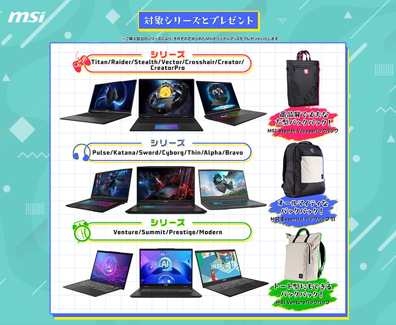 対象のMSIノートPC製品の購入で豪華特典がもらえる、2大キャンペーンを開催『MSI ノートPC 新生活応援キャンペーン2025』『MSIノートPC トリプルゲット!レビューキャンペーン 2025』