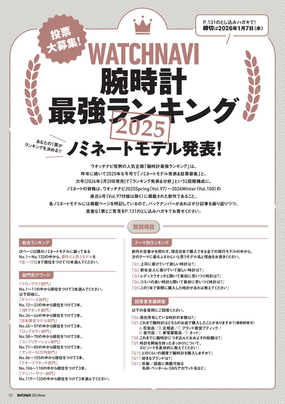 WATCHNAVI 2026 WINTER 1月号 Vol.100