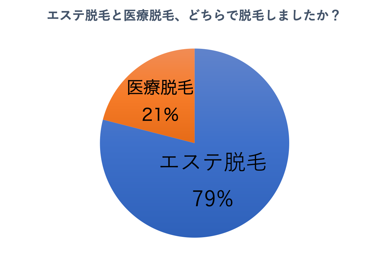エステ脱毛により脱毛をされた方が8割近くという結果となりました。
