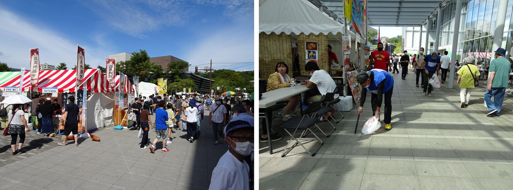 あきた海ごみゼロプロジェクト実行委員会は、9月17日(土)18日(日)の2日間、ABS秋田放送主催の「ABSまつり2022」にて、会場を訪れた方々に、秋田の海ごみゼロを目指す為に、私たちが身近にできるごみの分別や、ポイ捨て防止の啓発活動・釣りキチ三平ごみ拾い隊による会場周辺の清掃活動を行いました。秋田市中心部のまちに賑わいをもたらす文化・交流拠点「エリアなかいち」で行われたまつりの2日間は快晴に恵まれ、会場には5万人を越す来場者で賑わいました。
