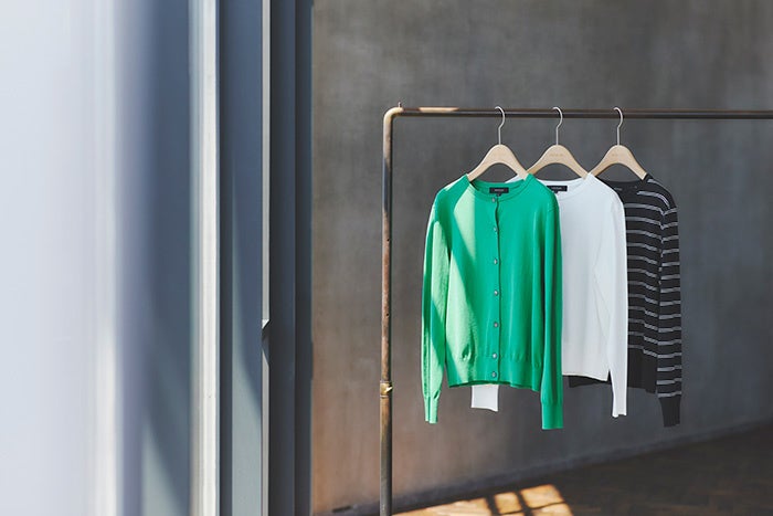 この夏のトレンドカラーを取り入れたサマーニットや見た目にも涼しげなメッシュカーディガン、肌触りの良いコットンのニットアンサンブルをご紹介いたします。