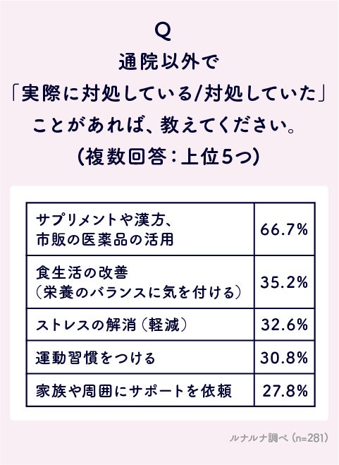 Q. 通院以外で「実際に対処している/対処していた」ことがあれば、教えてください。(複数回答)