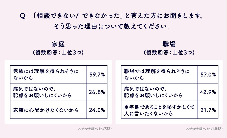 ■更年期について家族や職場に相談できない一番の理由は「理解を得られそうにない」から
