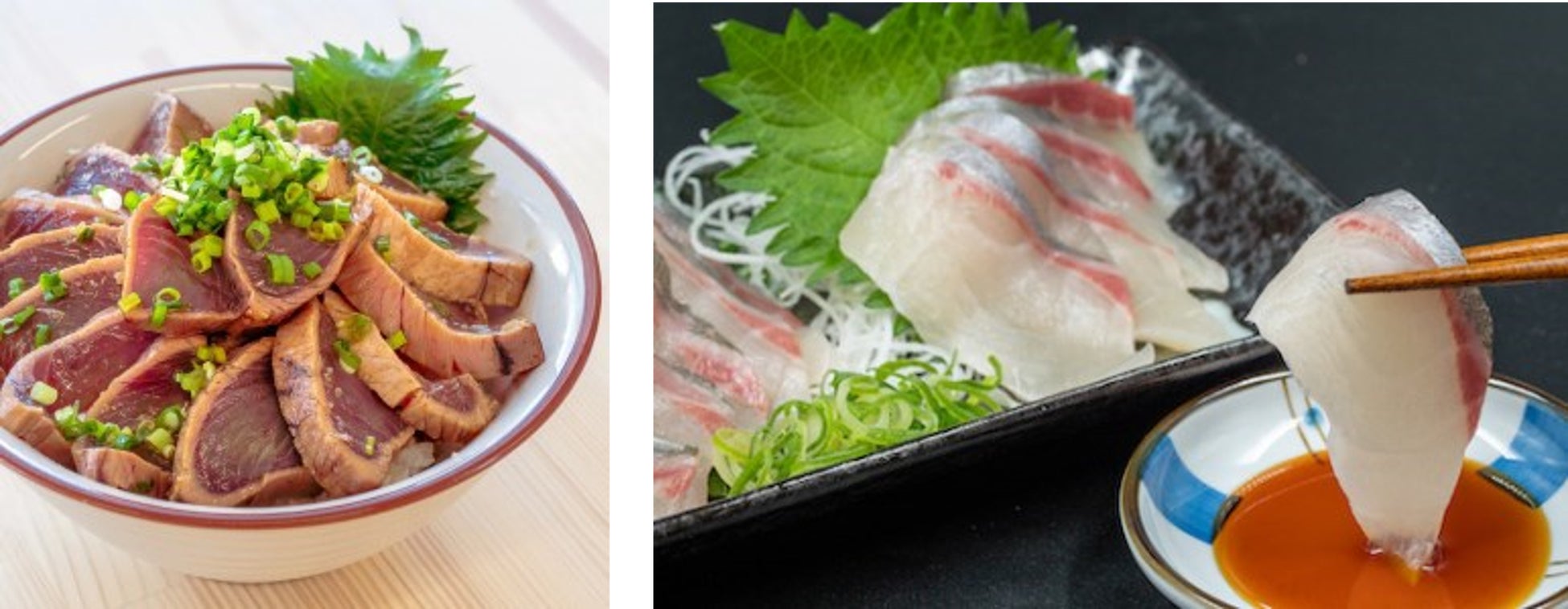 豊かな自然と美味しい海の幸が魅力のまちです。新荘川でニホンカワウソが確認されたこともある清流と、新鮮な魚介類が獲れる豊かな海に恵まれています。特にカツオは有名で、「たたき」は絶品です。養殖業の発祥の地としても知られ、ブランド化された「極みブリ」や「乙女鯛」もお試しあれ。