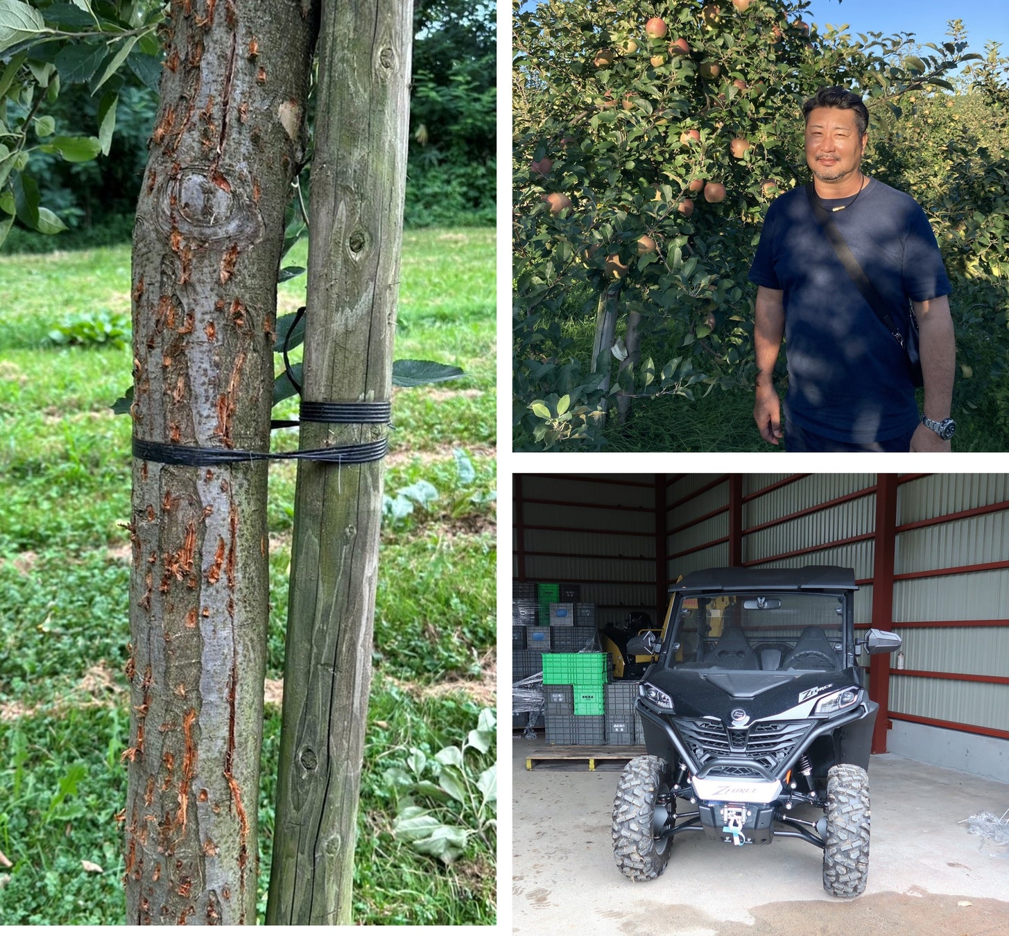 一度りんごの味を覚えたクマ(地元では「アップルベア」と呼ばれています)は、エサ場としてマーキングするために木に爪痕を残します。マーキングされた木は、クマが繰り返し出没する危険性があり、生産者の安全確保と被害拡大を防ぐために、やむを得ず切り落とすしかありません。すでに今シーズンは30本を伐採し、約1.8トンの収穫減となりました。さらに、伐採した木は苗木から育て直しても収穫まで約6年かかるため、今後6年間は毎年約1.8トン分の収穫ゼロが続くことになります。収穫作業にも影響が出ており、安全のためバギーを購入するなど、被害・対策額はこの産地だけで、現時点ですでに総計500万円を超えています。