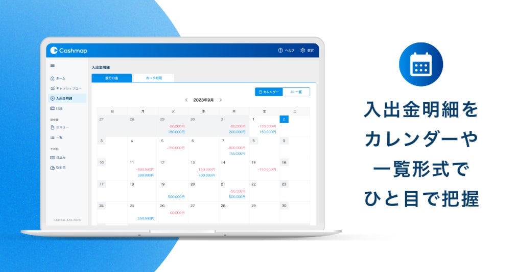 ✔入出金のタイミングや金額を、カレンダーや一覧形式で直感的に把握できるので、日々の資金計画が