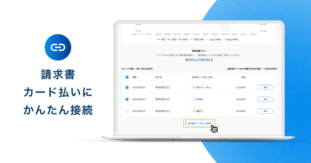 ✔将来の入出金をシミュレーションしながら、資金計画を立てられます。『Cashmap』に登録した請求書は、ボタン一つで簡単にカード払いに変更可能であり、支払期限を先延ばしできます。