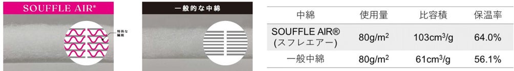 ■機能性中綿「SOUFFLE AIR®(スフレエアー)」特長