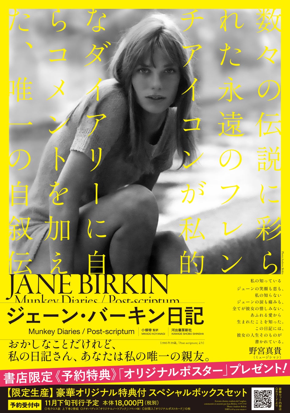 〈完全限定生産・豪華特典つき〉永遠のフレンチアイコン、ジェーン・バーキンが唯一残した自伝的作品『ジェーン・バーキン日記』が12月2日ついに発売!