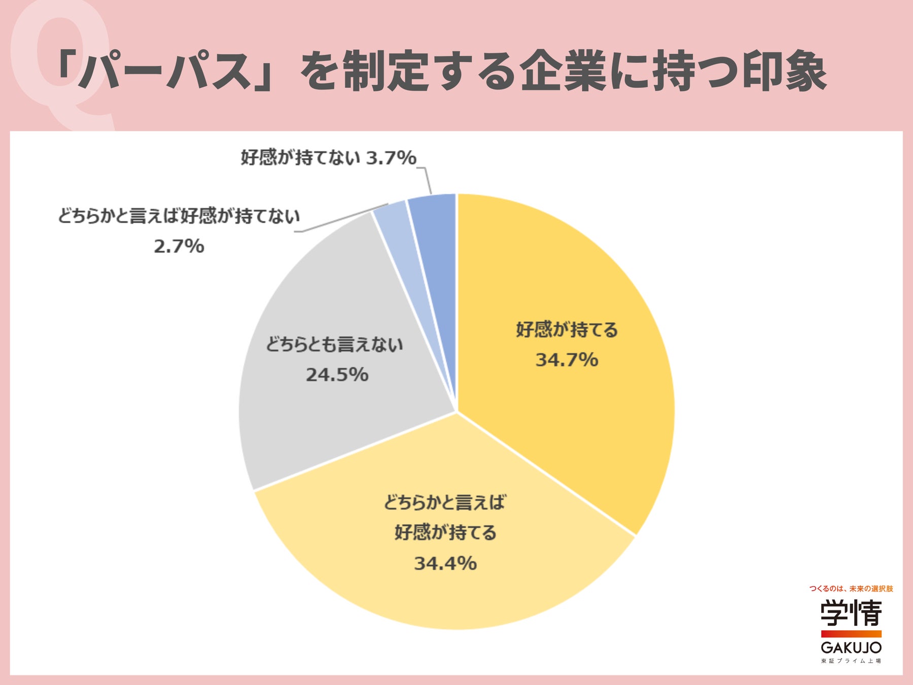 「パーパス」を制定する企業は「好感が持てる」と回答した学生が7割に迫る。「自身が大切にしたいことと、企業のパーパスが重なると、志望度が上がる」の声
