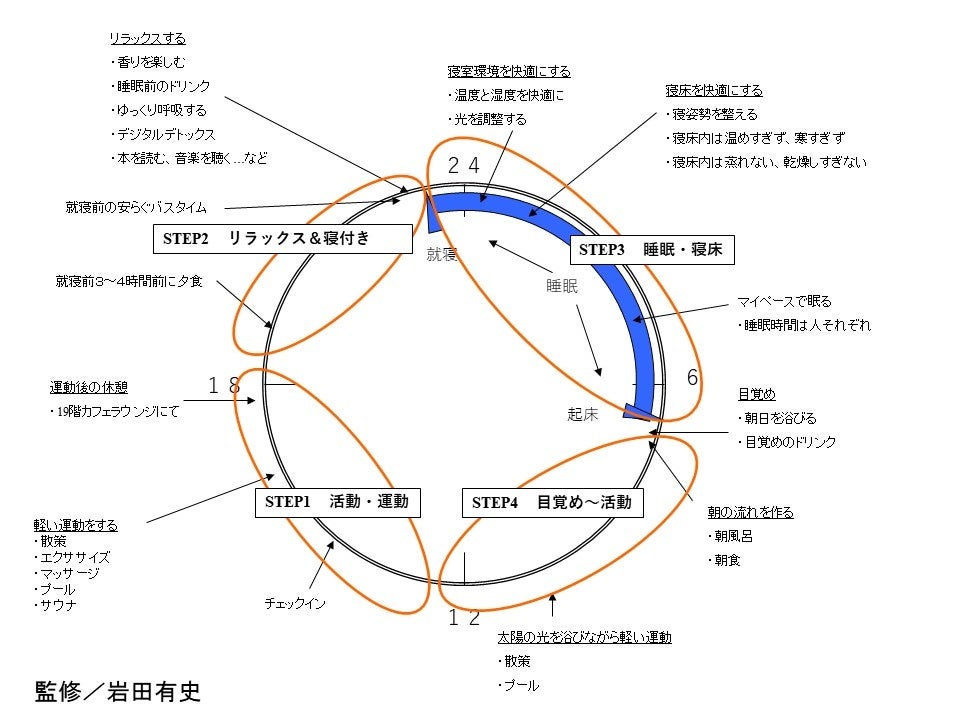 睡眠改善学をベースにSTEP1~4の滞在プログラムをご提案。
