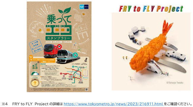 東京メトロの環境に関する取組みを認知できるイベント(スタンプラリー、FRY to FLY Project※4イベント)を開催し、利用を促すことでカーボンニュートラル実現に貢献いたします。