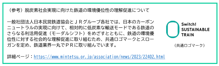 ・当社及び鉄道全体の環境優位性の認知に向けたPR活動の継続
