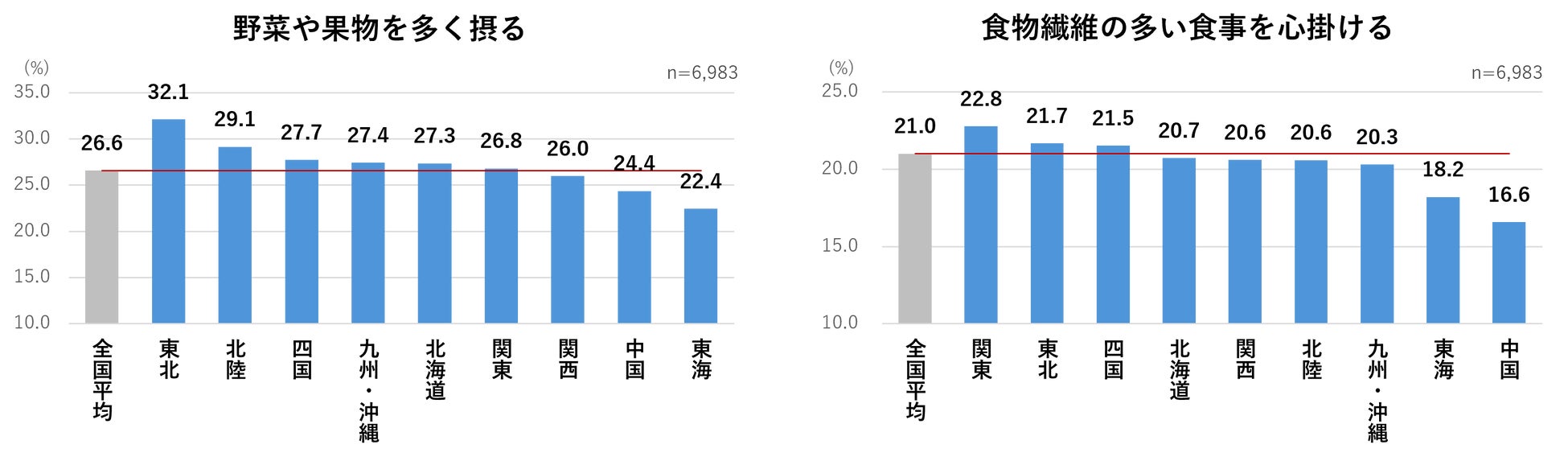 「野菜や果物を多く摂る」 1位は東北地方、最下位は東海地方。