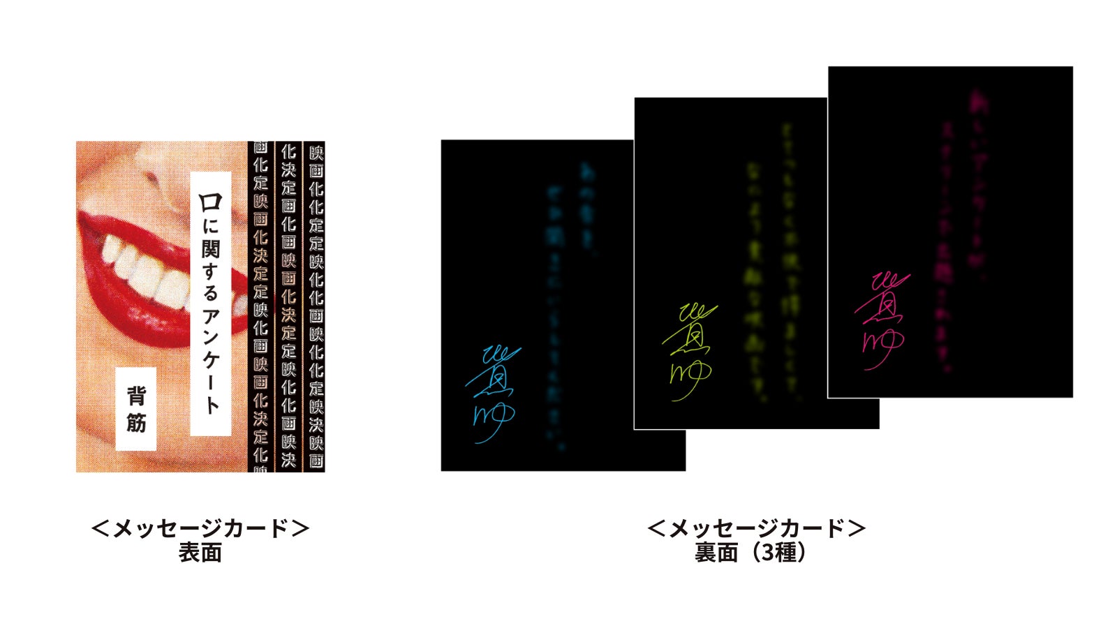 映画化を記念して、書籍『口に関するアンケート』では、作者・背筋さんのメッセージカード入りで新たに店頭展開予定です。