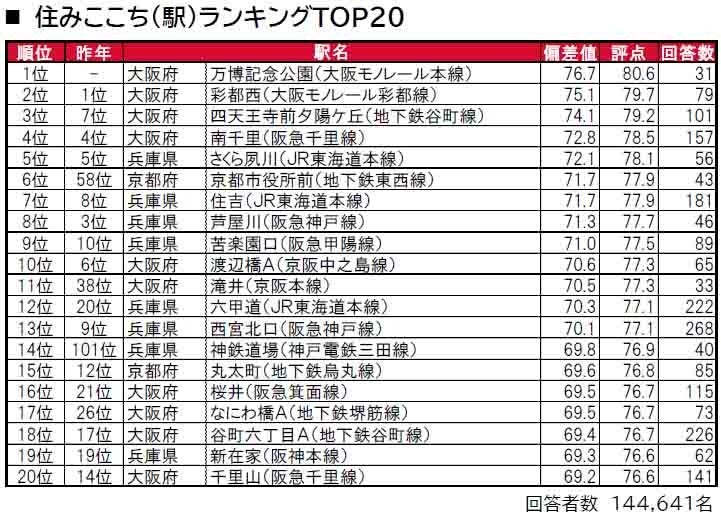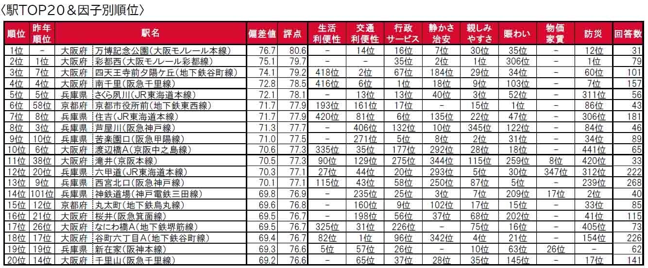 街の住みここちランキング2024<関西版>駅TOP20・自治体TOP20