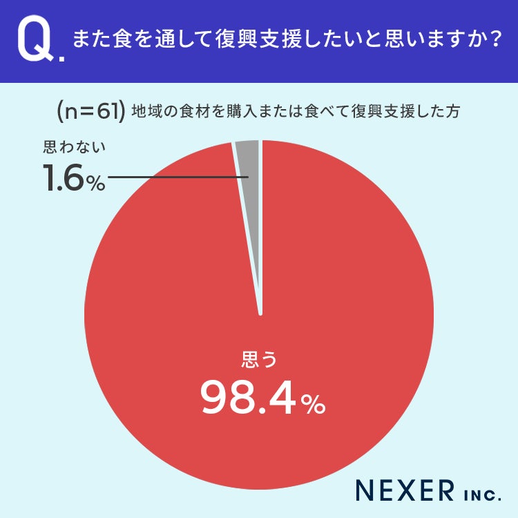 98.4%とほとんどの方が「また食を通して復興支援したいと思う」と回答しています。