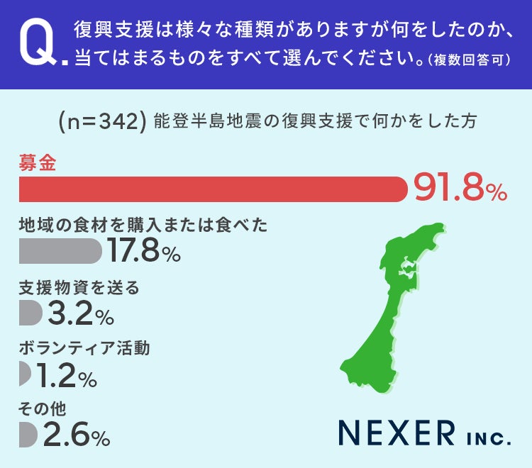 34.2%と3割以上の方が「能登半島地震の復興支援をした」と回答しています。