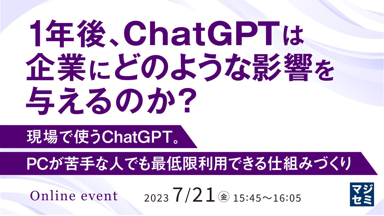 業界の第一線で、実際にChatGPTなどの生成AIを活用している企業をゲストとしてお迎えし、マジセミ代表の寺田とともに、「1年後、ChatGPTは企業にどのような影響を与えるのか?」というテーマで対談を行います。