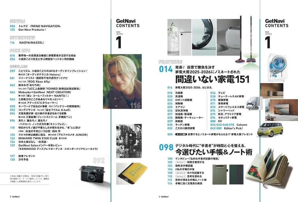 11回目の「家電大賞」が一般からの投票受付を開始。ノミネートされた151製品を紹介するとともにトレンドを徹底解説! 第2特集は手書きによるジャーナリングが注目される今読みたい、手帳&ノート術。