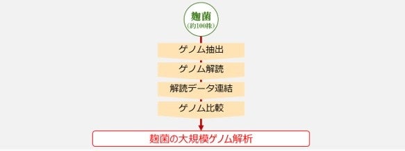 1)主要種麹メーカーから入手した約100株の麹菌株からゲノムを抽出