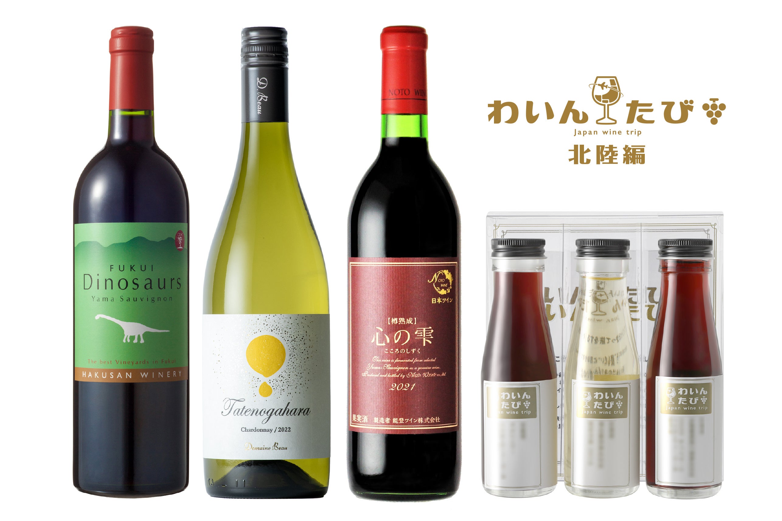 「わいんたび 北陸編」は、ぐるっと北陸3県周遊を想起させる石川県、富山県、福井県の3県のワイナリーの1ラインナップ。恐竜王国・福井県からは、“恐竜ワイン”をはじめテロワールを感じられる日本生まれの赤ワイン用ブドウ品種「ヤマ・ソーヴィニョン」の飲み比べもお楽しみください。【資料1-2】