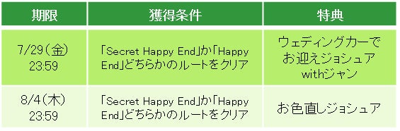 株式会社ボルテージ(本社:東京都渋谷区 代表取締役:津谷 祐司)は、提供中のボル恋タイトル「王子様のプロポーズ Ⅱ」 「王子様のプロポーズ Eternal Kiss」にてジョシュア王子(CV:浪川大輔)の続々編ストーリー「ロイヤルウェディング編」を7月26日(火)より配信を開始したことをお知らせいたします。