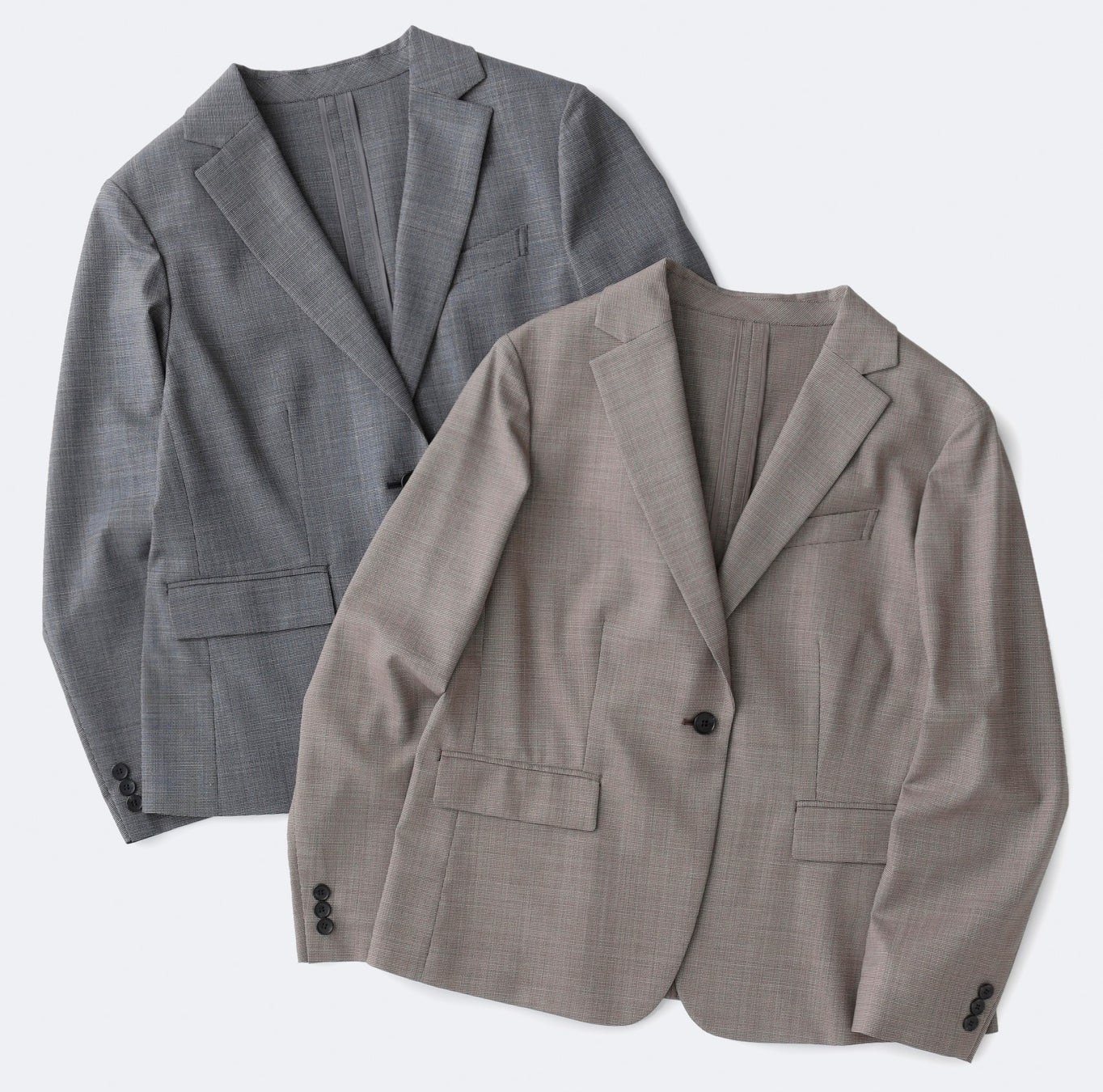 ご自宅で手洗い可能な、セットアップ対応のテーラードジャケット。2色の糸で織り上げたシャークスキン組織が、春夏らしい軽やかな雰囲気を与えてくれます。ストレッチ性があり、快適な着心地もポイント。