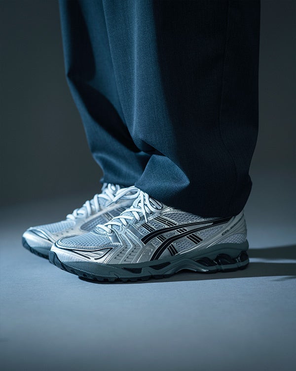 今回コラボレーションしたモデルは、2008年にアメリカのランニング専門誌「RUNNER’S WORLD」の「INTERNATIONAL Editor’s Choice」賞を受賞した、当時のをデザインベースとしたGEL-KAYANO 14。