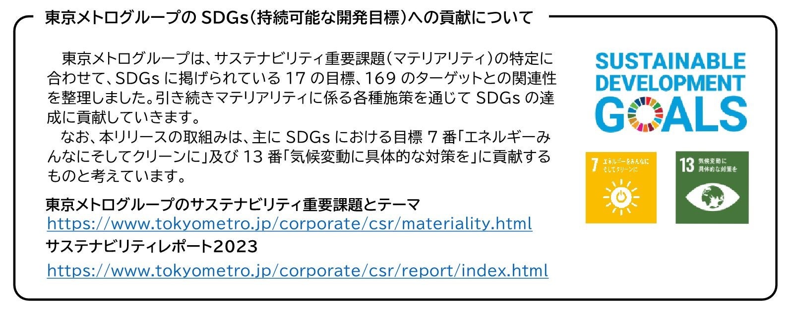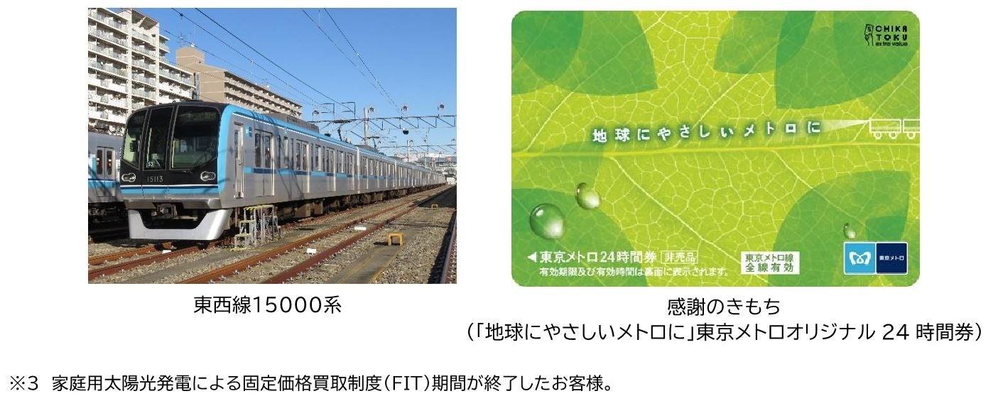 また、東西線には東京電力EP社が提供する「再エネ企業応援プラン」を導入し、家庭用太陽光で発電された余剰電力の環境価値を充てることで、使用電力の一部を実質再エネ化します。