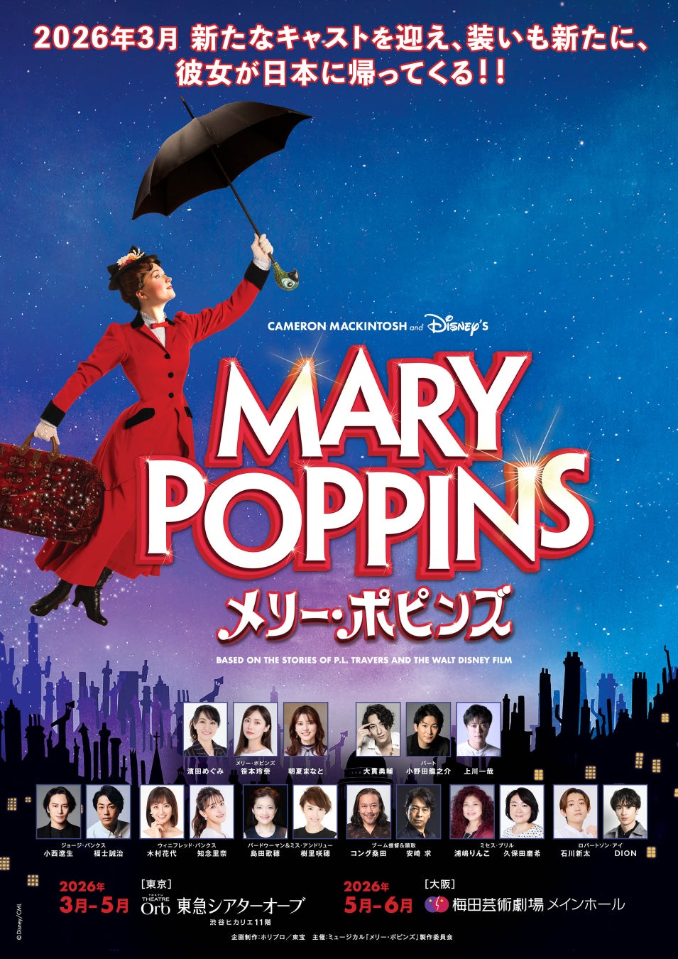 2018年・2022年に日本版キャストにて上演され、大盛況と話題になったミュージカル『メリー・ポピンズ』の再演が決定、大人キャストが発表となった。2026年3~5月に東京・東急シアターオーブ、5~6月に大阪・梅田芸術劇場メインホールにて上演。