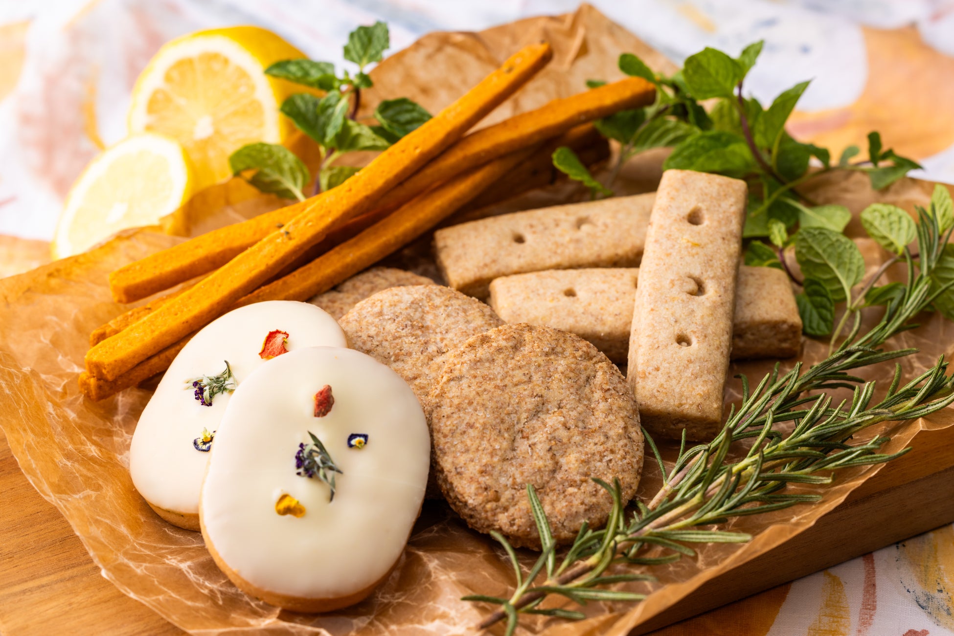 ハルニレテラスの「Karuizawa Vegetable ココペリ」では、期間中に食品ロスを減らす焼菓子を販売します。小麦粉をつくる過程で廃棄しされてしまう小麦の表皮「ブラン」と、季節のハーブを使用した、素朴ながらもやさしい味わいのショートブレッドやクッキーを期間限定でご用意します。