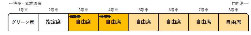 ※イメージ図(博多~門司港間において3号車および4号車を指定席から自由席へ変更します)