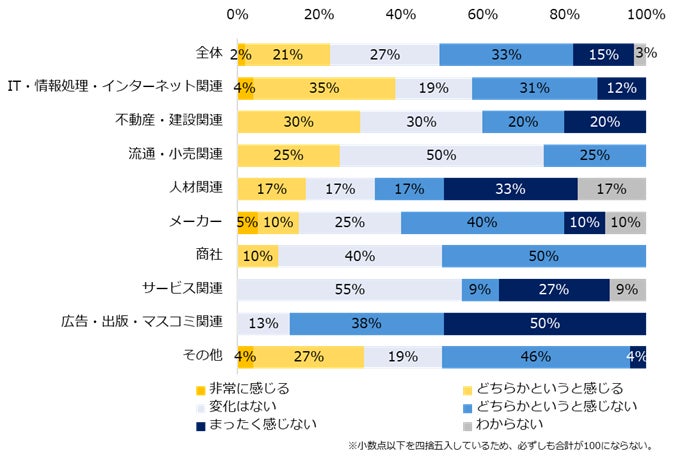 ▼「まったく感じない」「どちらかというと感じない」と回答した企業