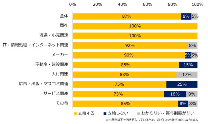 87%の中小企業が冬季賞与を「支給する」。昨年から3ポイント減少。