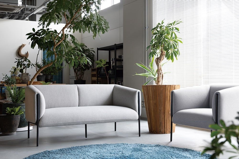 もっちりとしたクッションにシャープな脚を合わせたソファ。アーム部分にはパイピングが施されていて、シンプルな形状でありながら、さりげないデザインを取り入れています。
