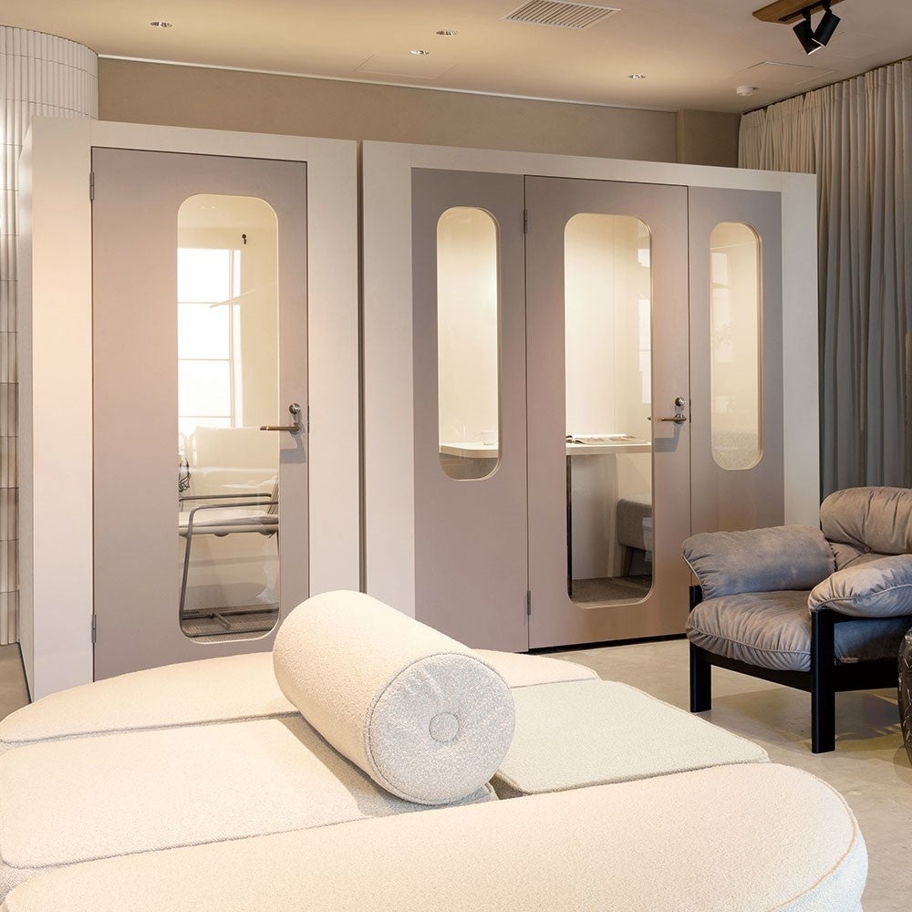 リモートでの打合せや、集中して一人で作業する際の個室ワークスペースとして人気のコクーンブース(写真左)から、対面式タイプ(写真右)の販売を開始します。
