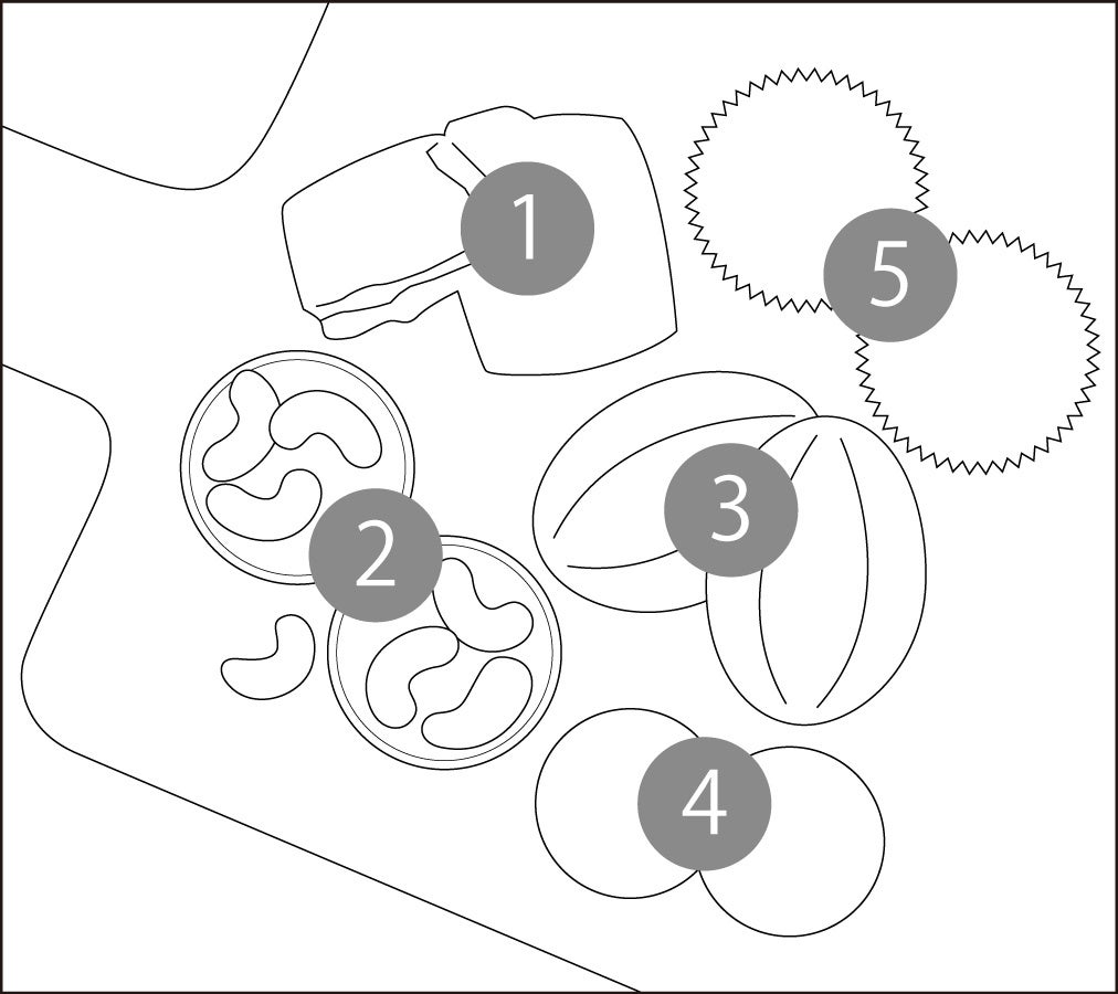キャラメリゼしたカシューナッツをサクサクのモナカにのせました。香ばしさが心地いい味わい。