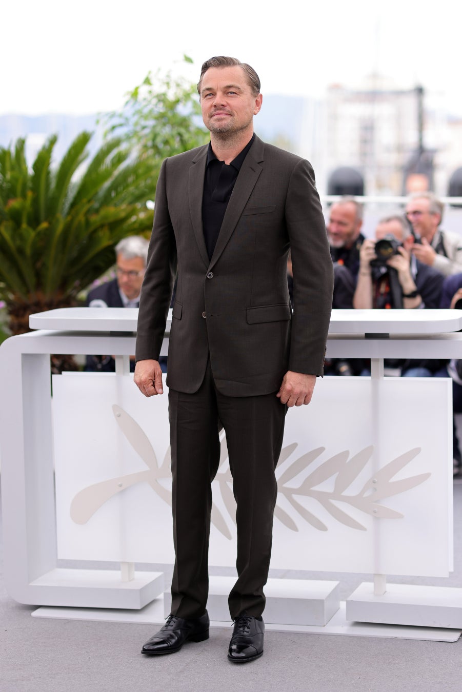 レオナルド・ディカプリオは、メイド トゥ メジャーによるブラウンウールのノッチラペルスーツに身を包み登場。