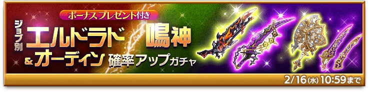 <己の限界を超えろ!「ジョブ別 エルドラド・鳴神&オーディン確率アップガチャ」販売!>