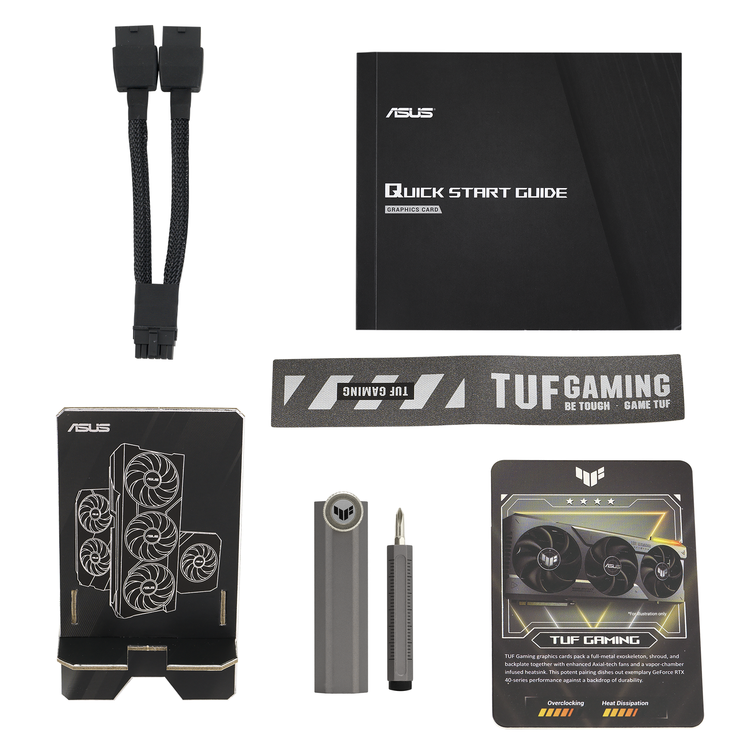 コレクションカード×1 スピードセットアップマニュアル×1 サンキューカード×1 TUF ベルクロフック&ループ×1 TUF ビデオカードホルダー×1 TUF Gaming 認定書×1 アダプタケーブル×1 |